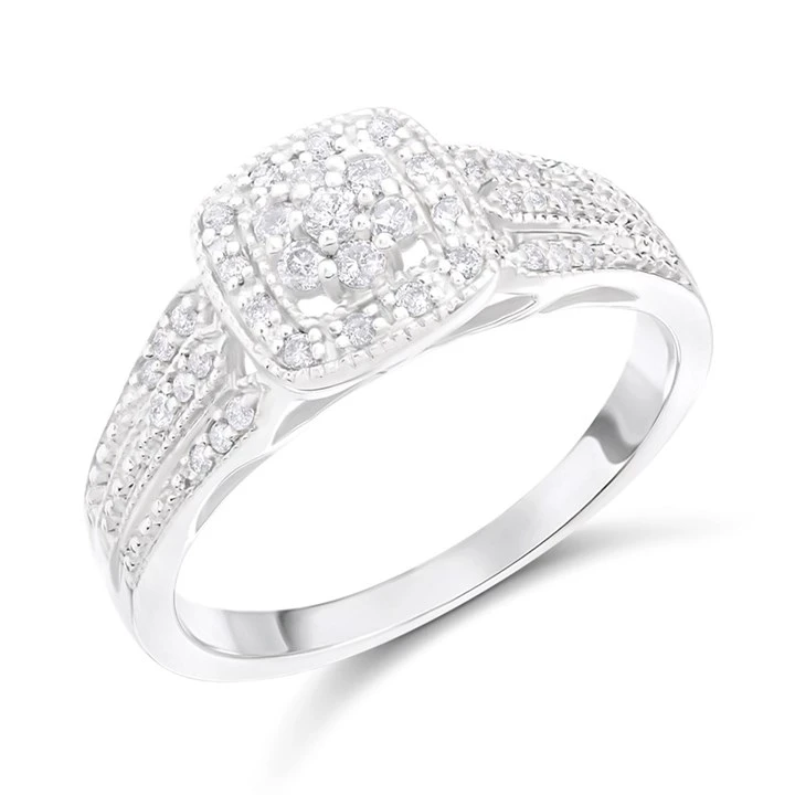 9ct White Gold Diamond Cluster Ring - 20pts - Size K - Z51149