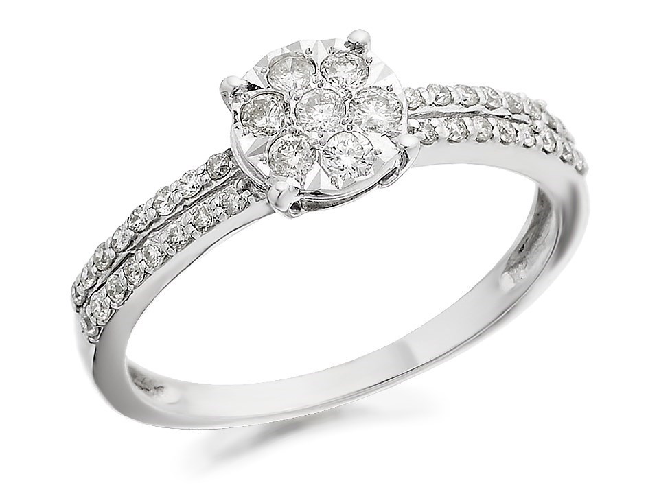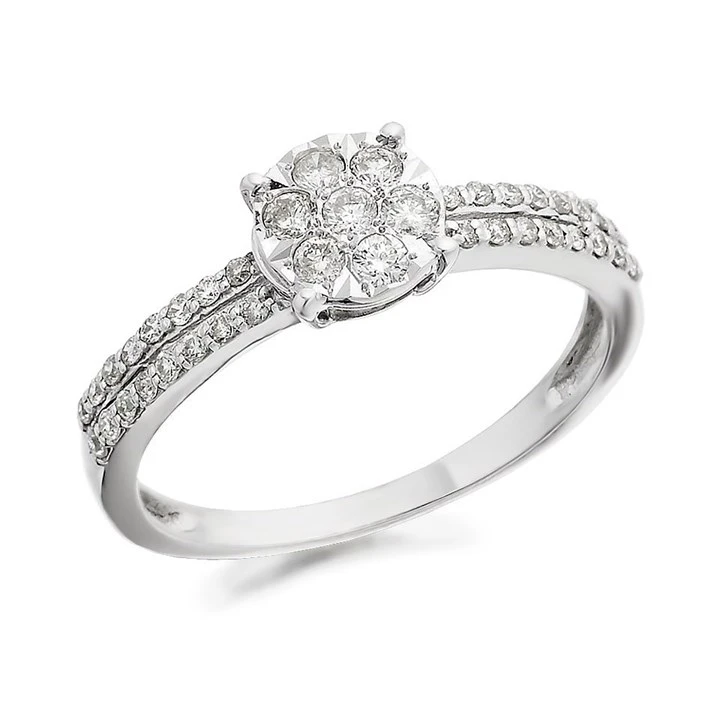 9ct White Gold Diamond Cluster Ring - 30pts - D7254