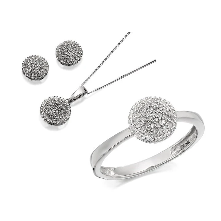 9ct White Gold Diamond Cluster Ring, Earrings And Necklace Gift Set - 1/4ct - D8607