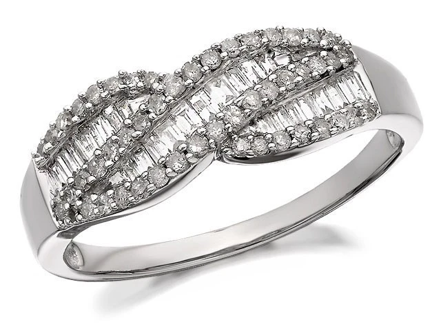 9ct White Gold Diamond Crossover Bow Ring - 1/2ct - D7746