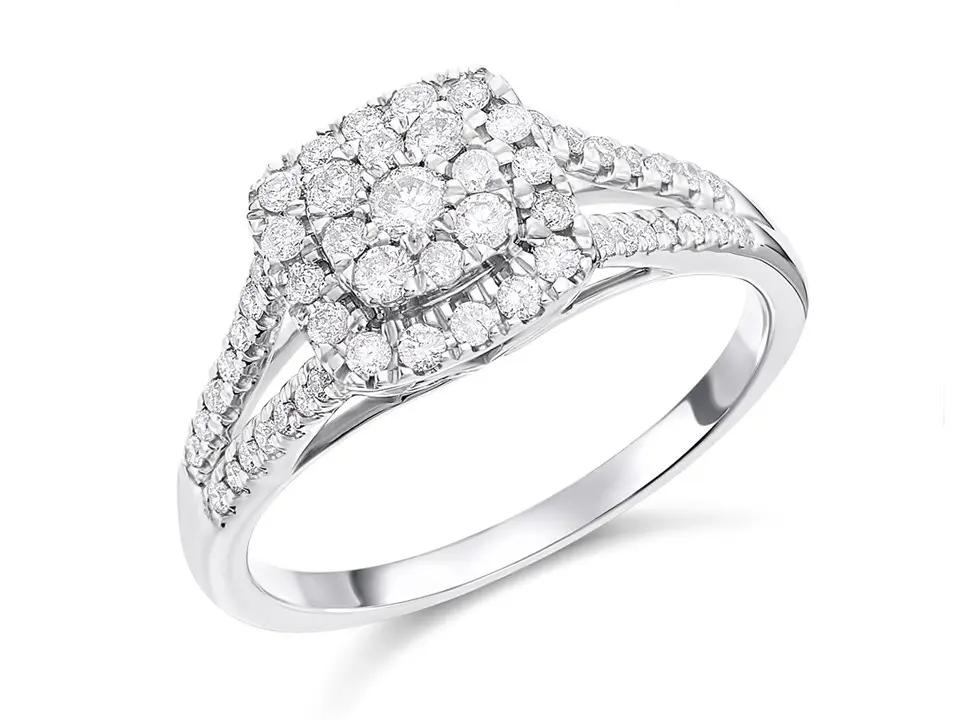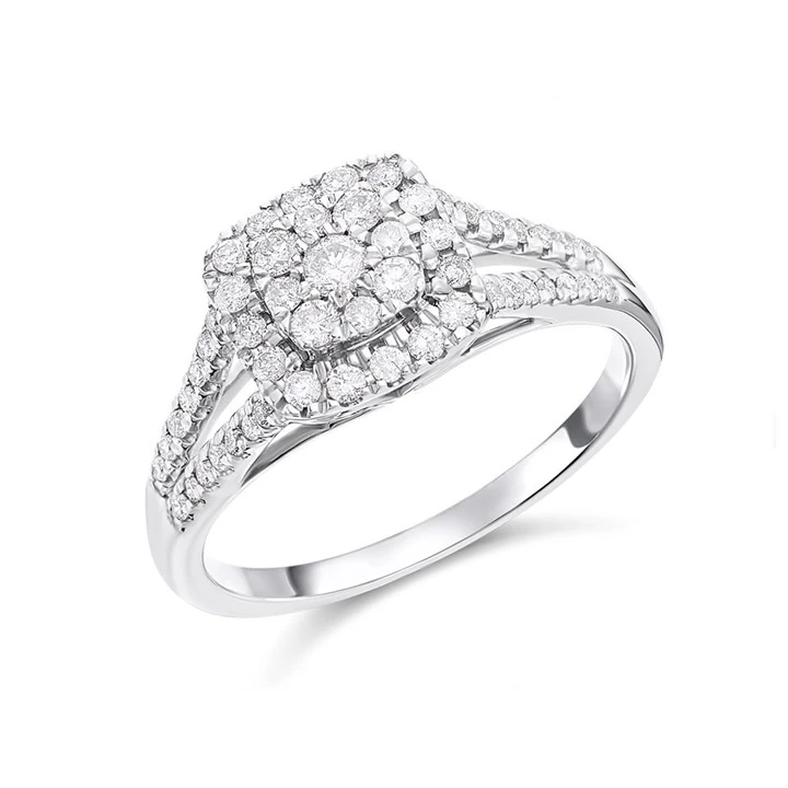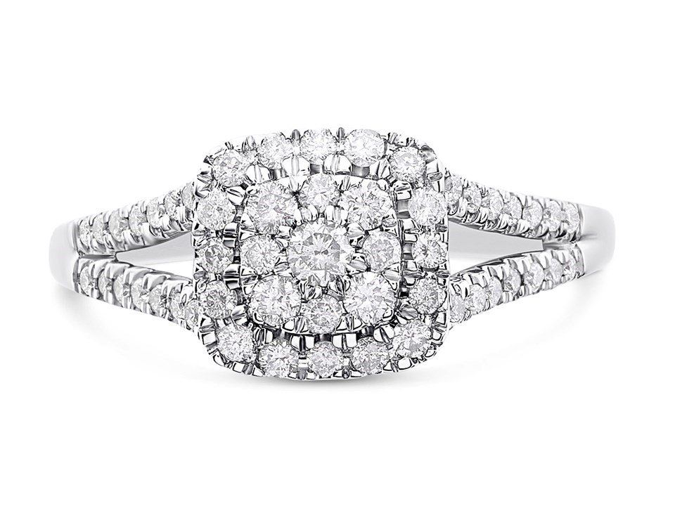 9ct White Gold Diamond Cushion Cluster Ring - 1/2ct - D71178