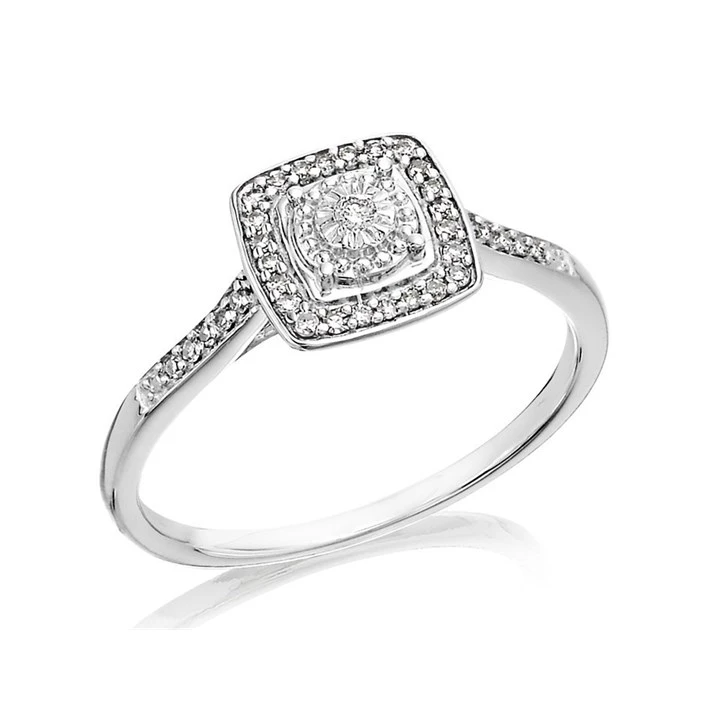 9ct White Gold Diamond Cushion Cluster Ring - 12pts - D71130