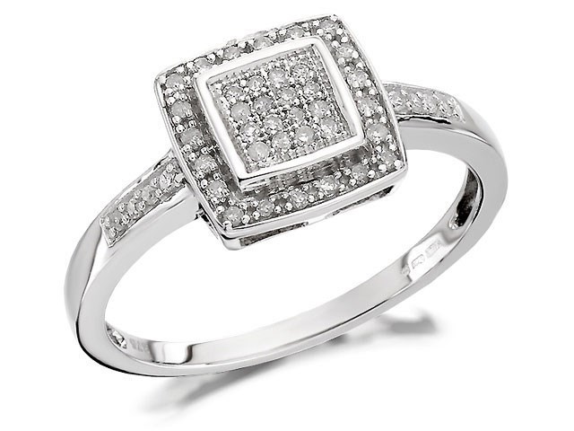 9ct White Gold Diamond Cushion Cluster Ring - 15pts - D6611