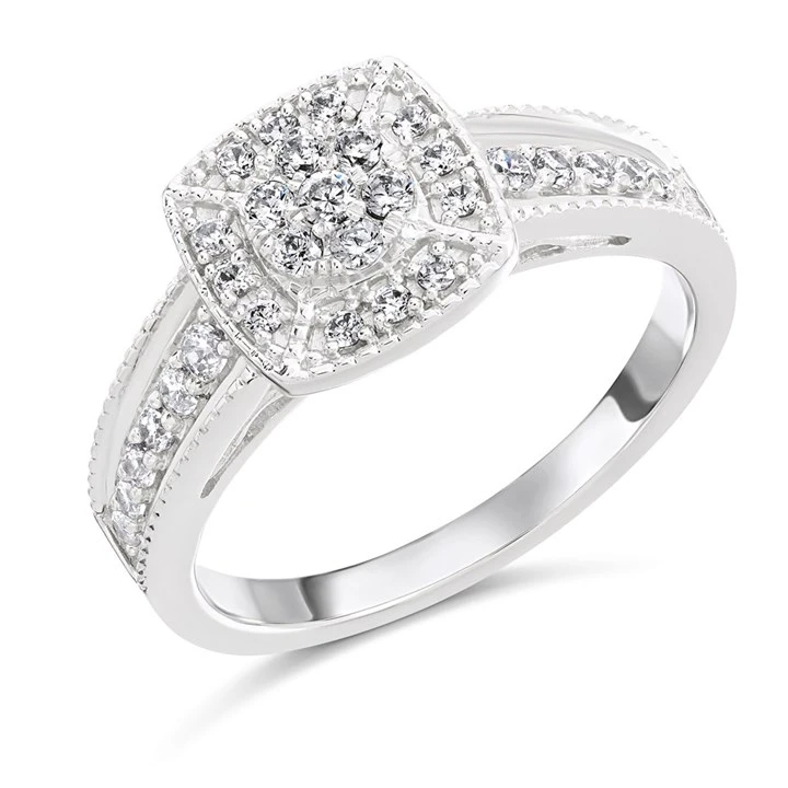 9ct White Gold Diamond Cushion Cluster Ring - 37pts - D5258