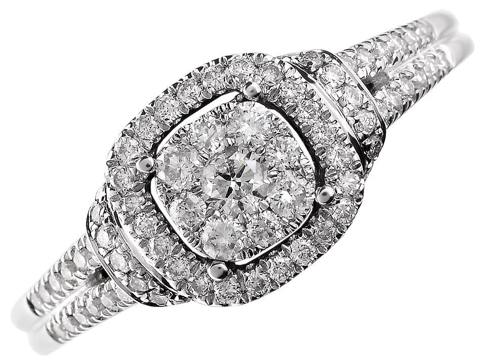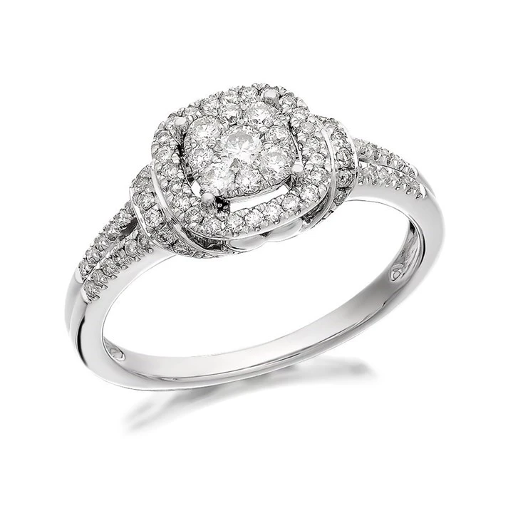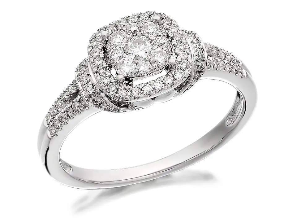 9ct White Gold Diamond Cushion Halo Cluster Ring - 40pts - D6854