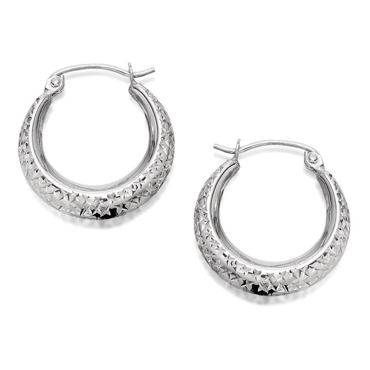 9ct White Gold Diamond Cut Creole Hoop Earrings - 17mm - G4130