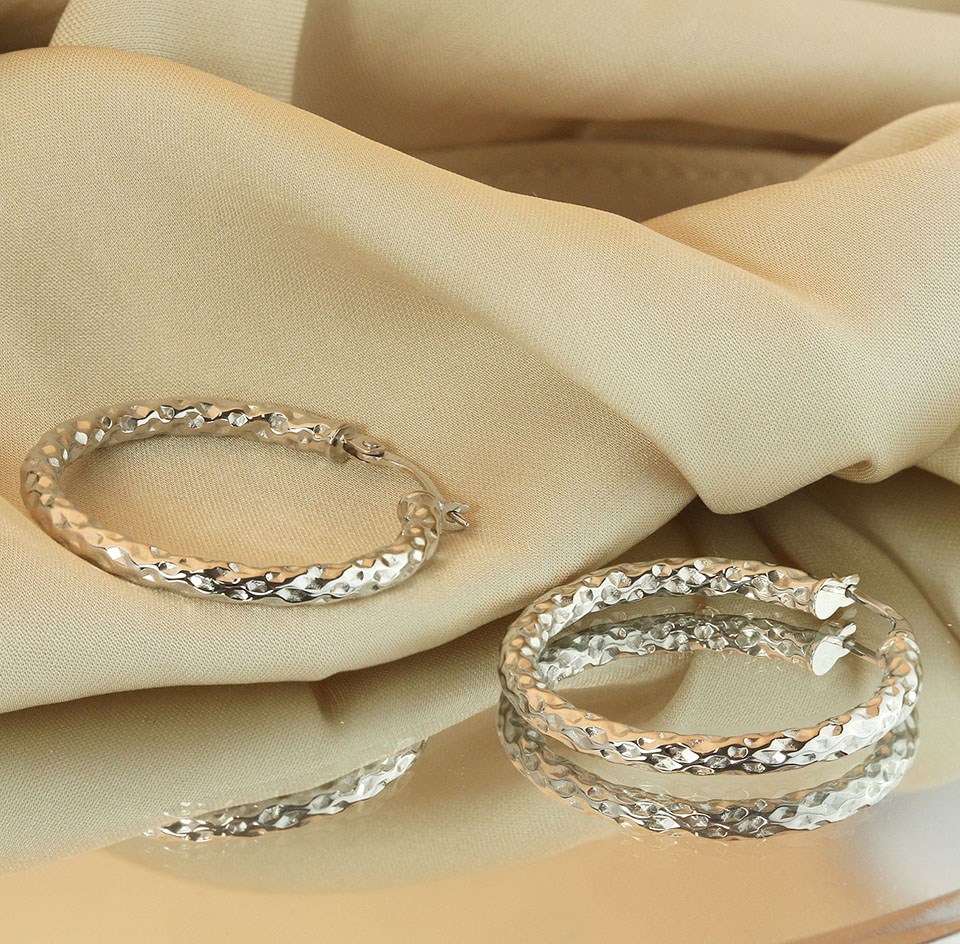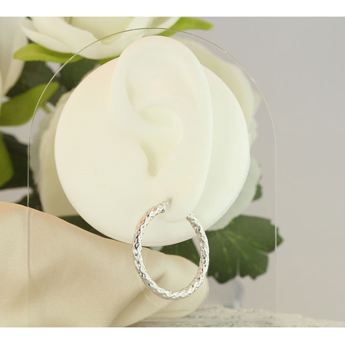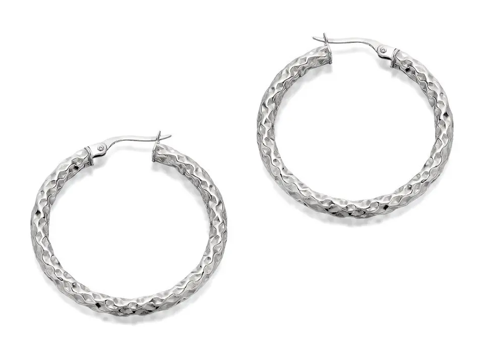 9ct White Gold Diamond Cut Hoop Earrings - 30mm - G2107