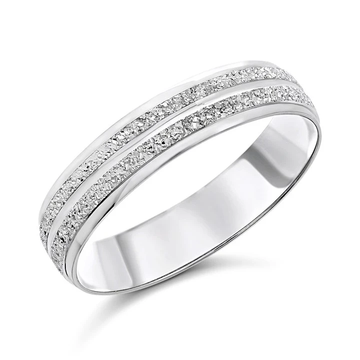 9ct White Gold Diamond Cut Wedding Ring - 4mm - R2455