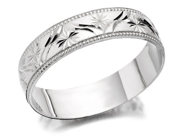 9ct White Gold Diamond Cut Wedding Ring - 5mm - R2451