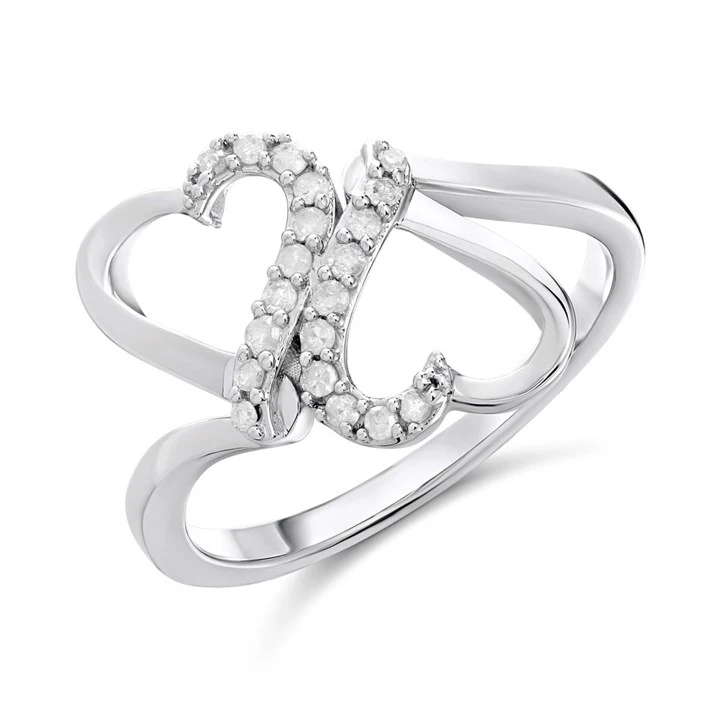 9ct White Gold Diamond Double Heart Ring - 15pts - D66148