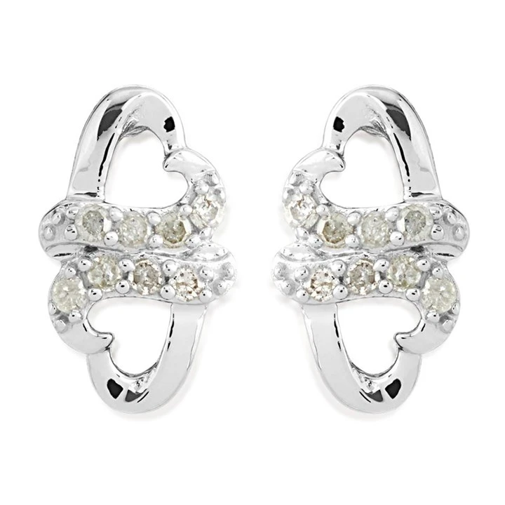 9ct White Gold Diamond Double Heart Stud Earrings - 10pts per pair - D9672