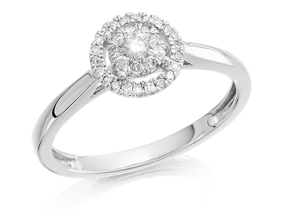 9ct White Gold Diamond Halo Cluster Ring - 20pts - D68112