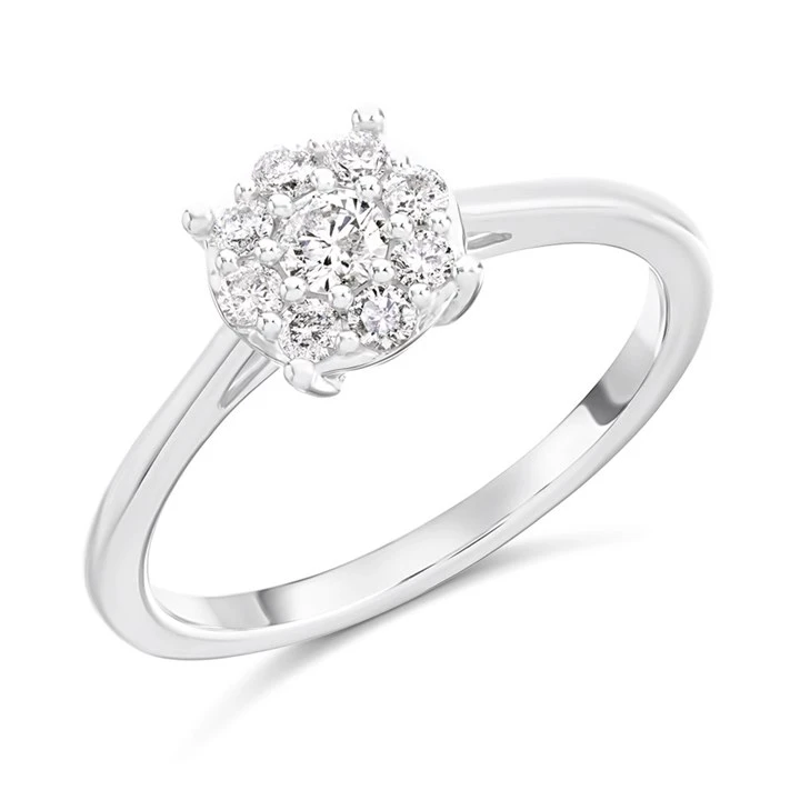 9ct White Gold Diamond Halo Cluster Ring - 32pts - D68204