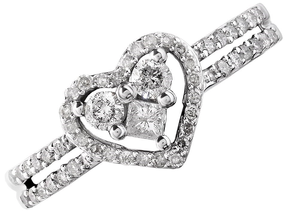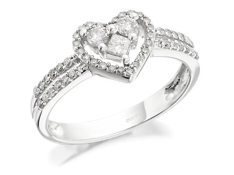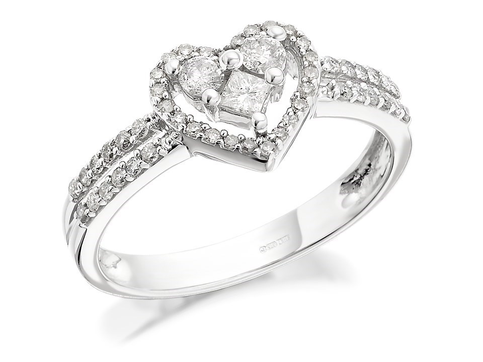 9ct White Gold Diamond Heart Cluster Ring - 1/2ct - D7227