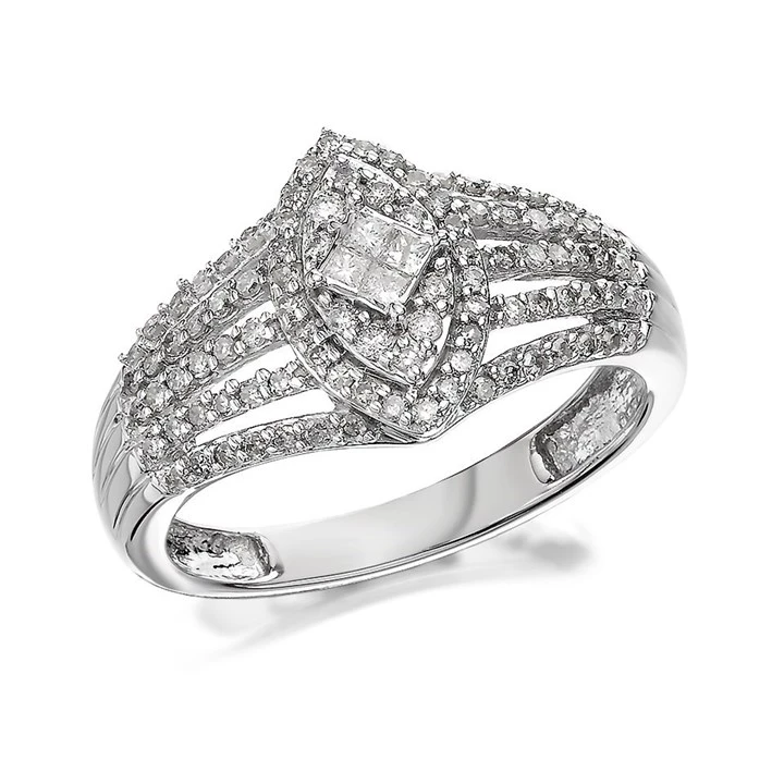 9ct White Gold Diamond Marquise Band Ring - 1/2ct - D7226
