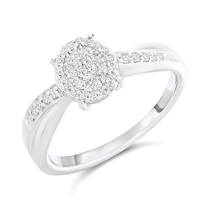 9ct White Gold Diamond Oval Cluster Ring - 18pts - D66190