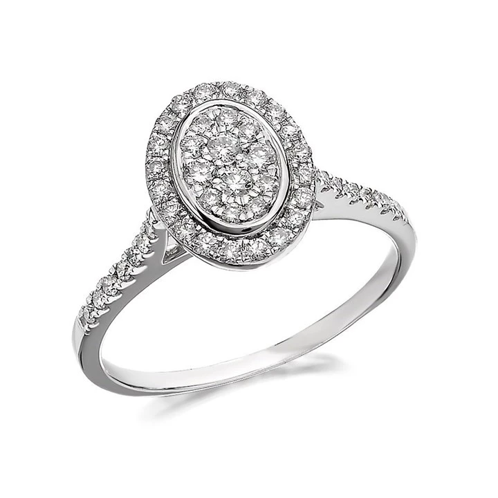 9ct White Gold Diamond Oval Halo Cluster Ring - 1/2ct - D6808