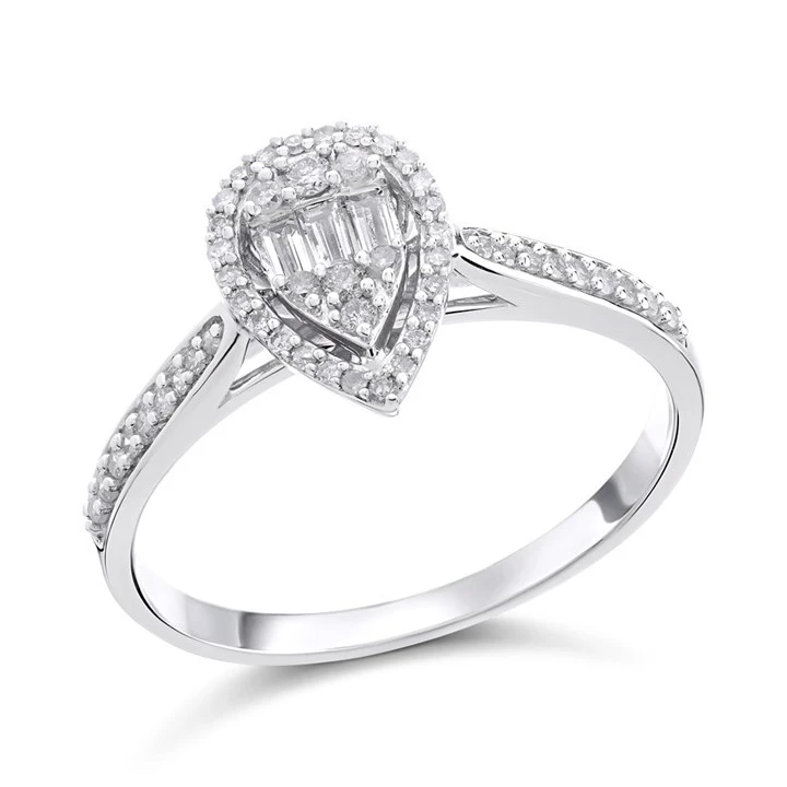 9ct White Gold Diamond Pear Halo Cluster Ring - 1/4ct - D66151