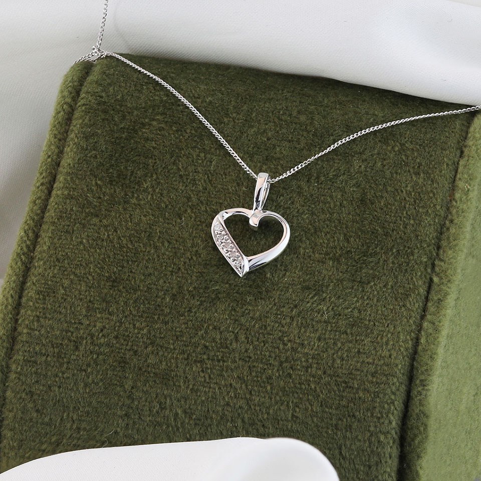9ct White Gold Diamond Set Heart Necklace - R8104