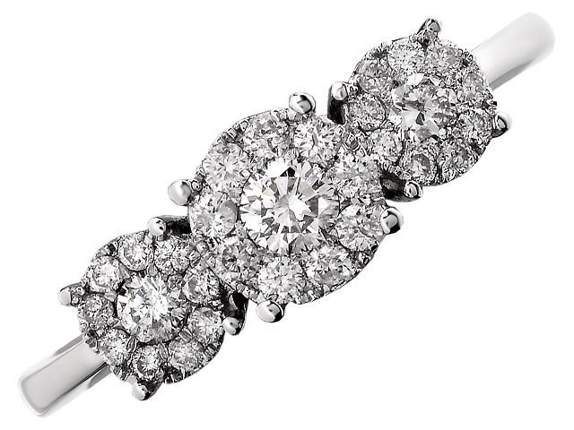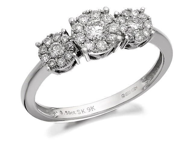 9ct White Gold Diamond Trilogy Cluster Ring - 1/2ct - D7716