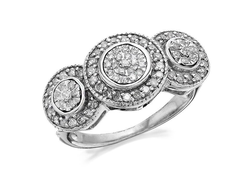 9ct White Gold Diamond Trilogy Cluster Ring - 1/2ct - d7206