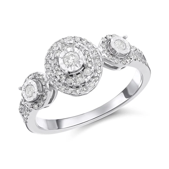 9ct White Gold Diamond Trilogy Cluster Ring - 1/3ct - D66132-O