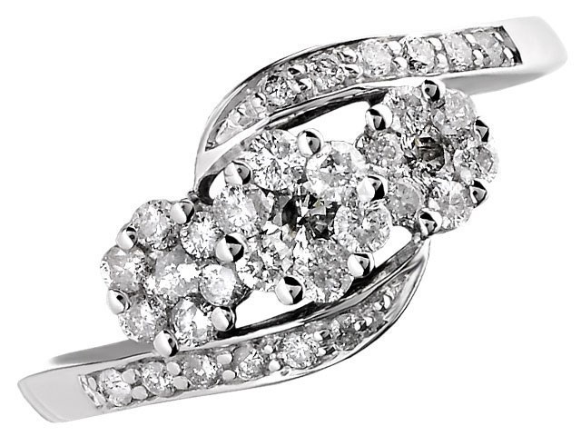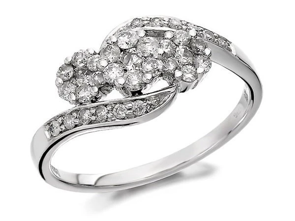 9ct White Gold Diamond Trilogy Crossover Cluster Ring - 1/2ct - Z50747