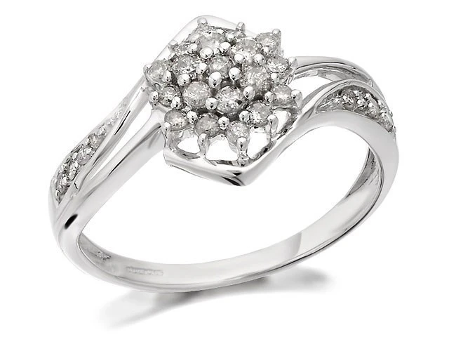 9ct White Gold Diamond Twist Cluster Ring - 1/3ct - D7221