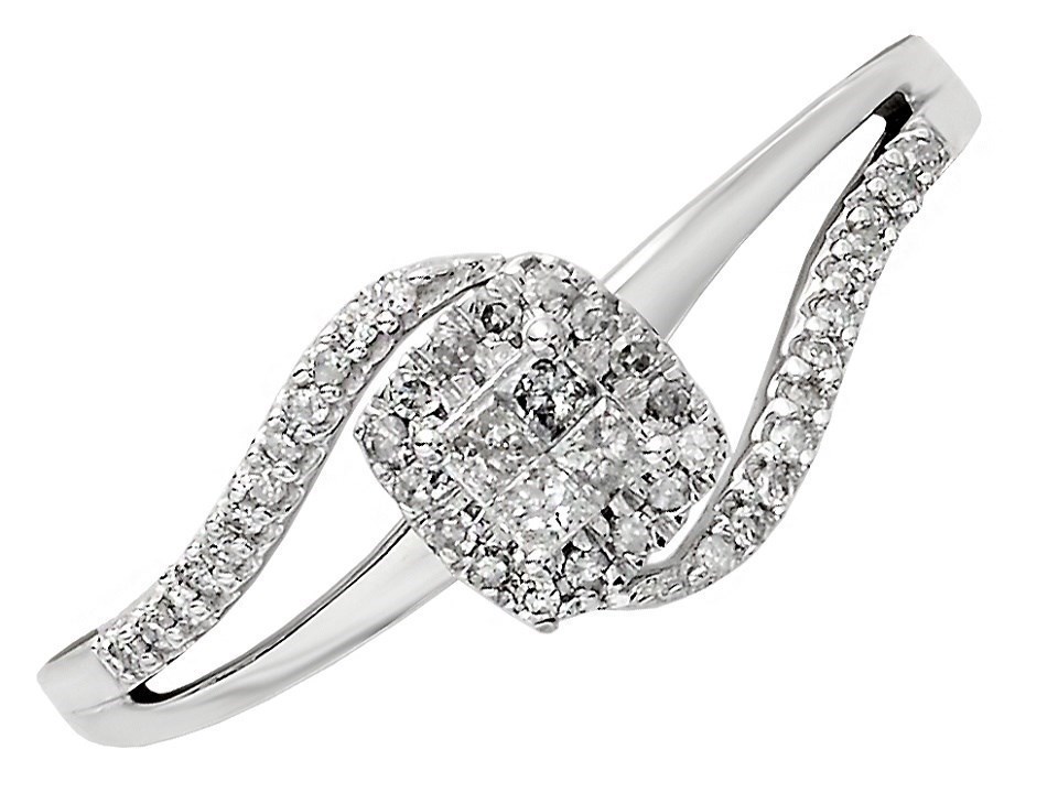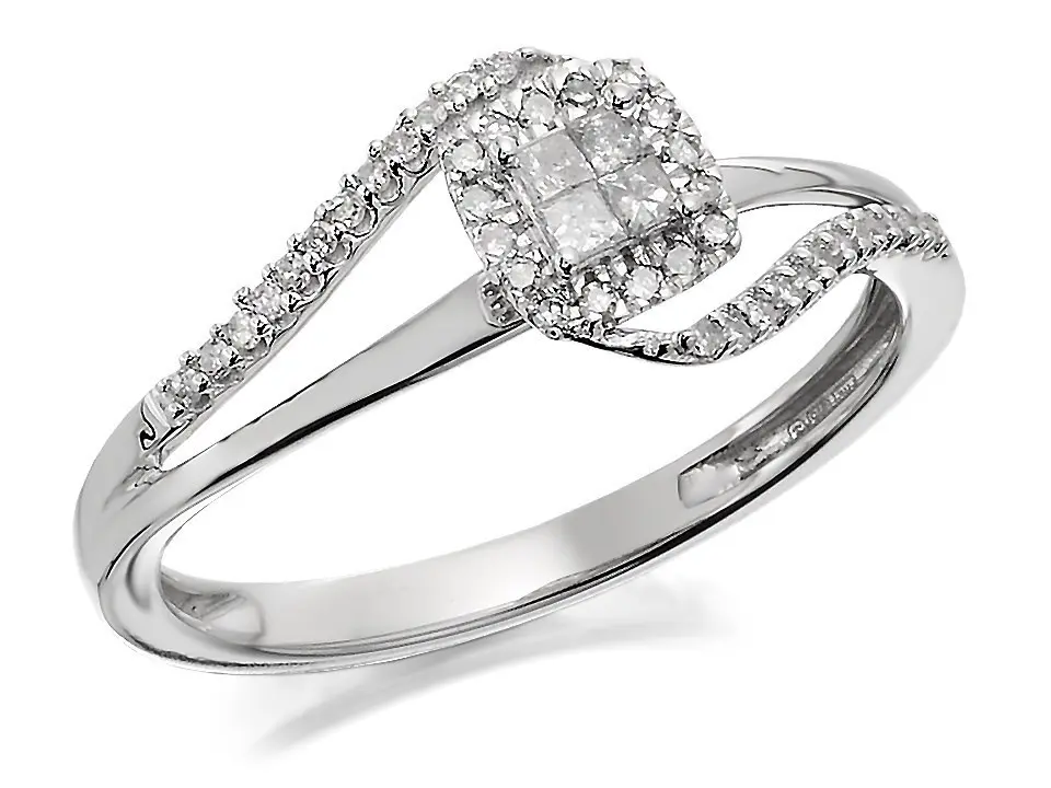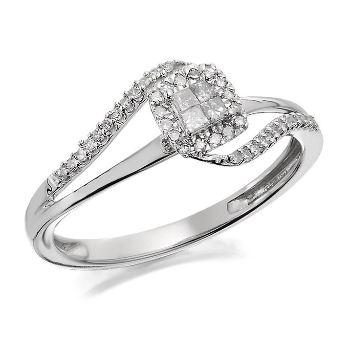 9ct White Gold Diamond Twist Cluster Ring - 20pts - D71142