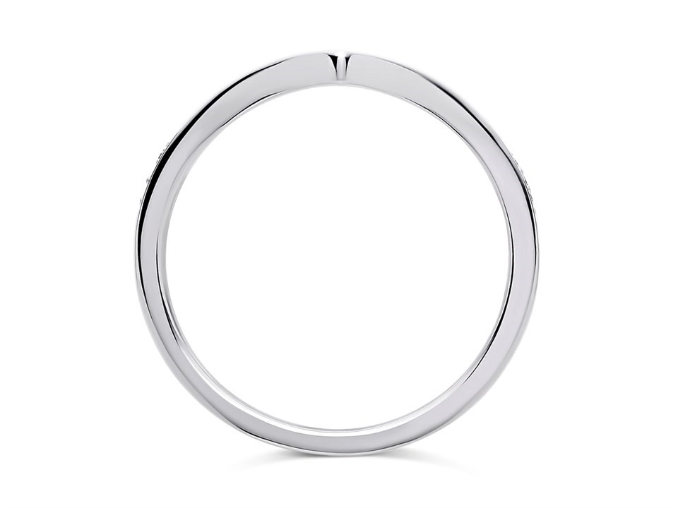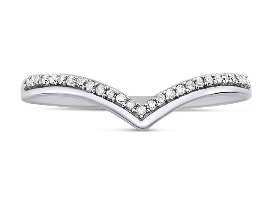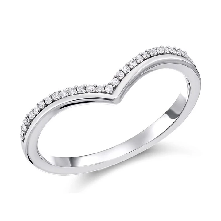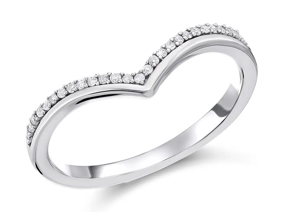 Diamond wishbone rings look lovely worn singly - as an alternative to a diamond eternity ring - but are usually selected to fit round an engagement ring, creating a perfectly shaped diamond set wedding ring. Usually with the point or curve worn towards the heart, they are romantic and symbolic.