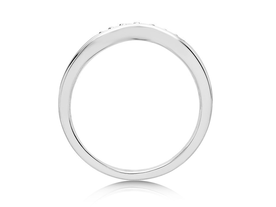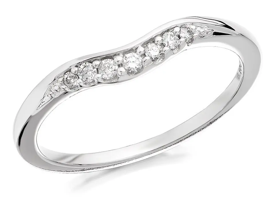 Diamond wishbone rings look lovely worn singly - as an alternative to a diamond eternity ring - but are usually selected to fit round an engagement ring, creating a perfectly shaped diamond set wedding ring. Usually with the point or curve worn towards the heart, they are romantic and symbolic.