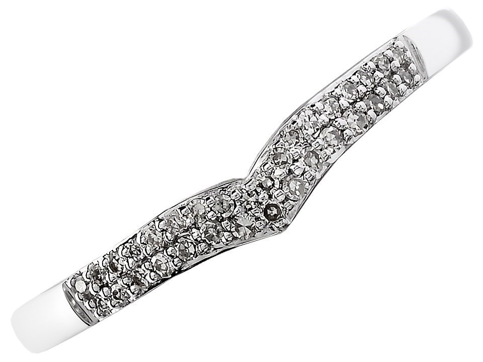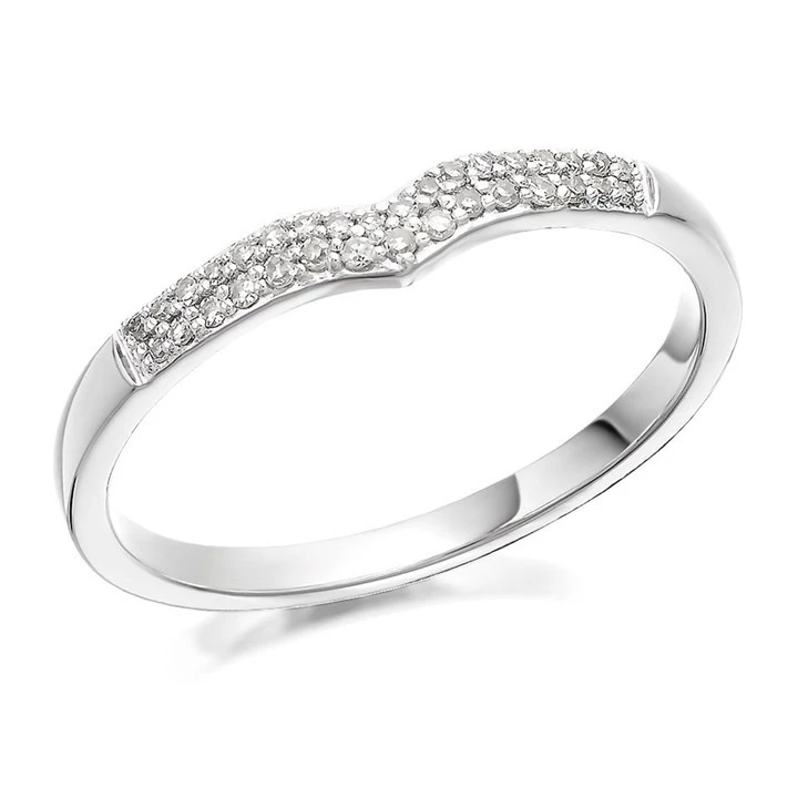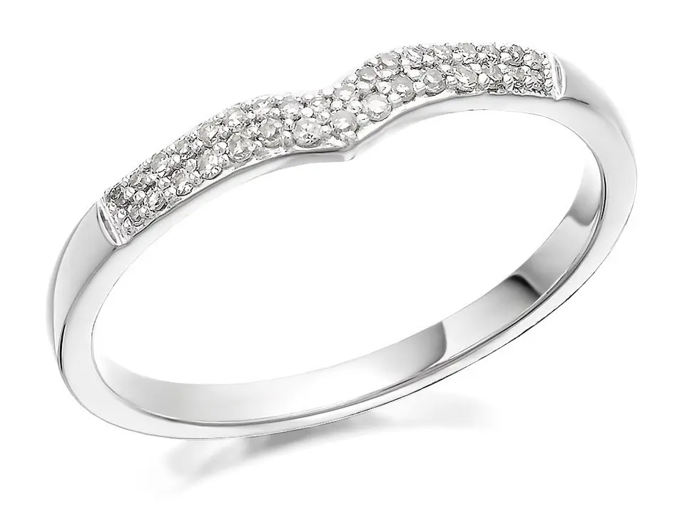 Diamond wishbone rings look lovely worn singly - as an alternative to a diamond eternity ring - but are usually selected to fit round an engagement ring, creating a perfectly shaped diamond set wedding ring. Usually with the point or curve worn towards the heart, they are romantic and symbolic.
