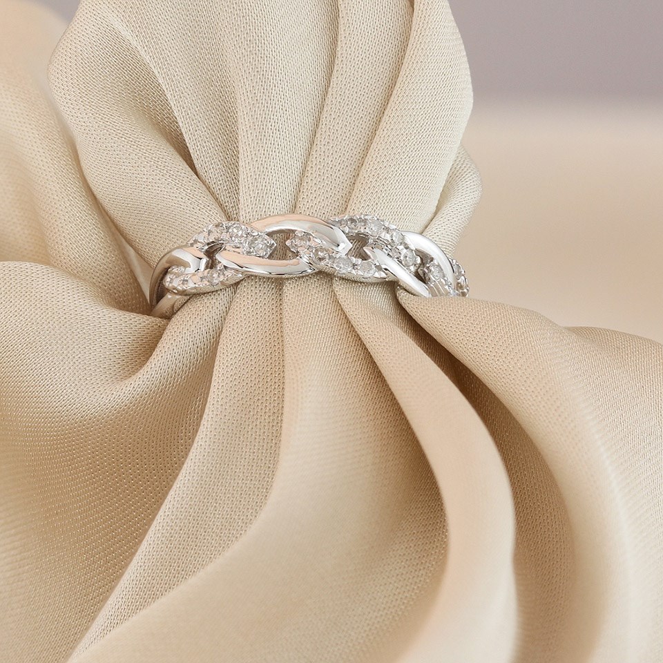 9ct White Gold Diamond-Set Chain-Link Half Eternity Ring - D71236