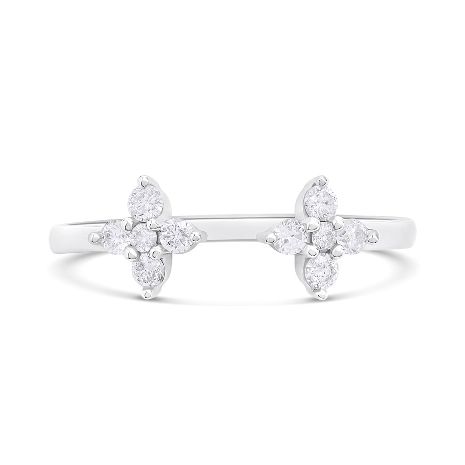 9ct White Gold Diamond-Set Clover Torc Ring, 1/4ct - D72160