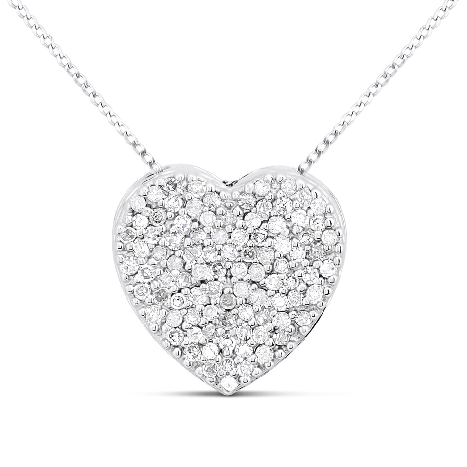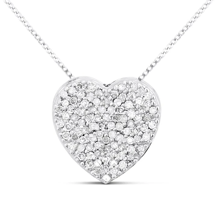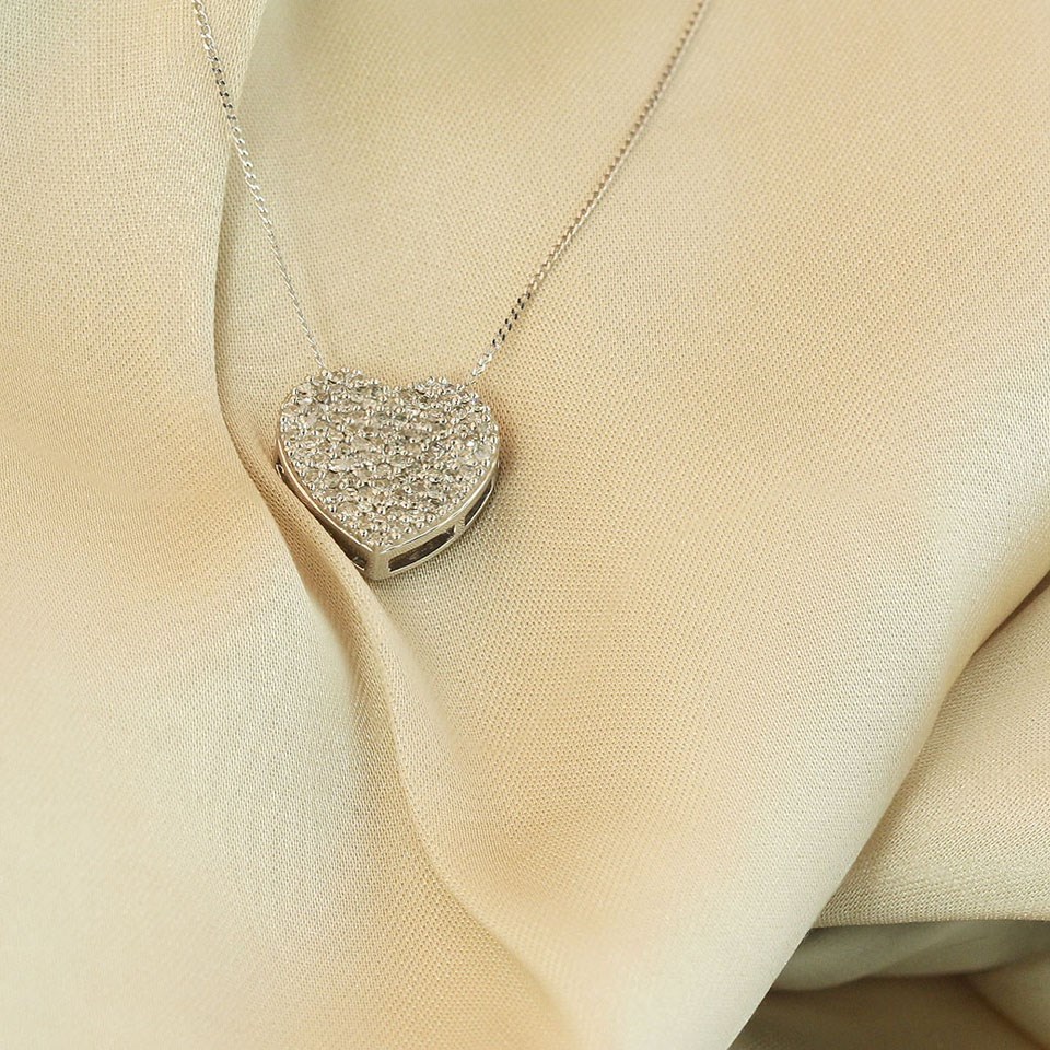 9ct White Gold Diamond-Set Heart Slider Necklace-1/4ct - D56161