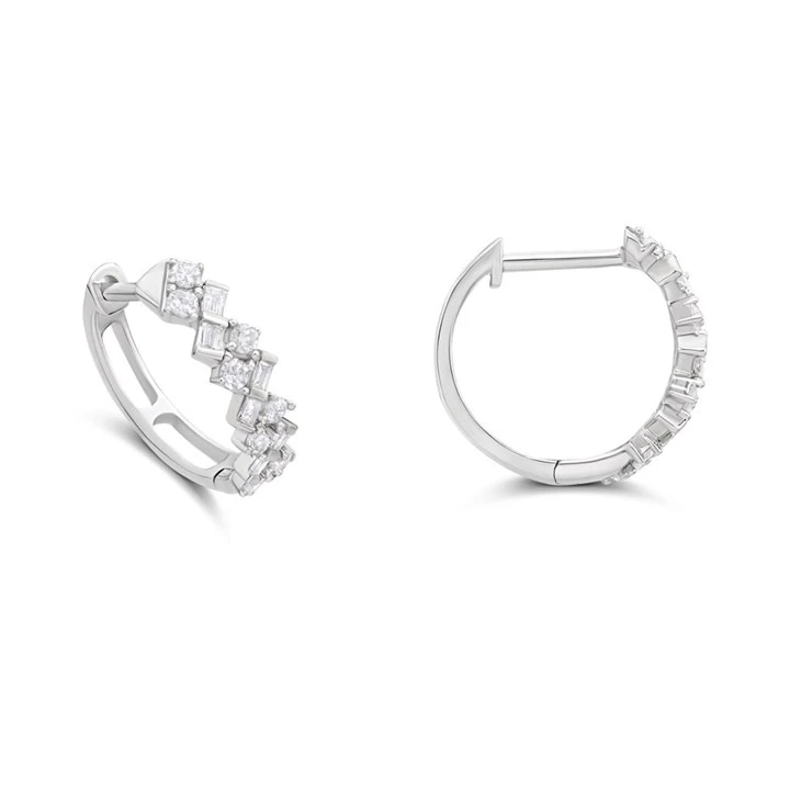 9ct White Gold Diamond-Set Huggie Earrings 30 pts/pr - D5560