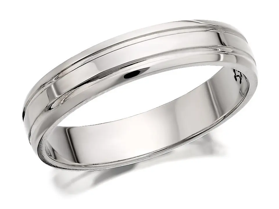 9ct White Gold Double Banded Wedding Ring - 4mm - R2474