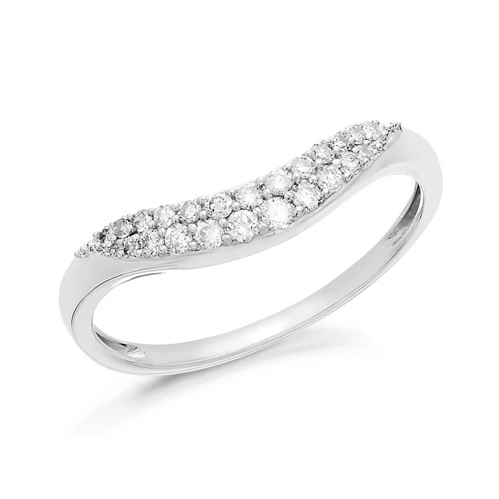 Diamond wishbone rings look lovely worn singly - as an alternative to a diamond eternity ring - but are usually selected to fit round an engagement ring, creating a perfectly shaped diamond set wedding ring. Usually with the point or curve worn towards the heart, they are romantic and symbolic.