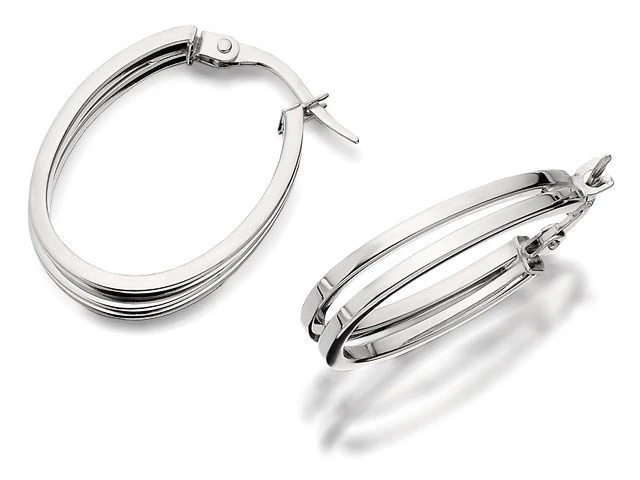 9ct White Gold Double Strand Oval Hoop Earrings - 23mm - G4183