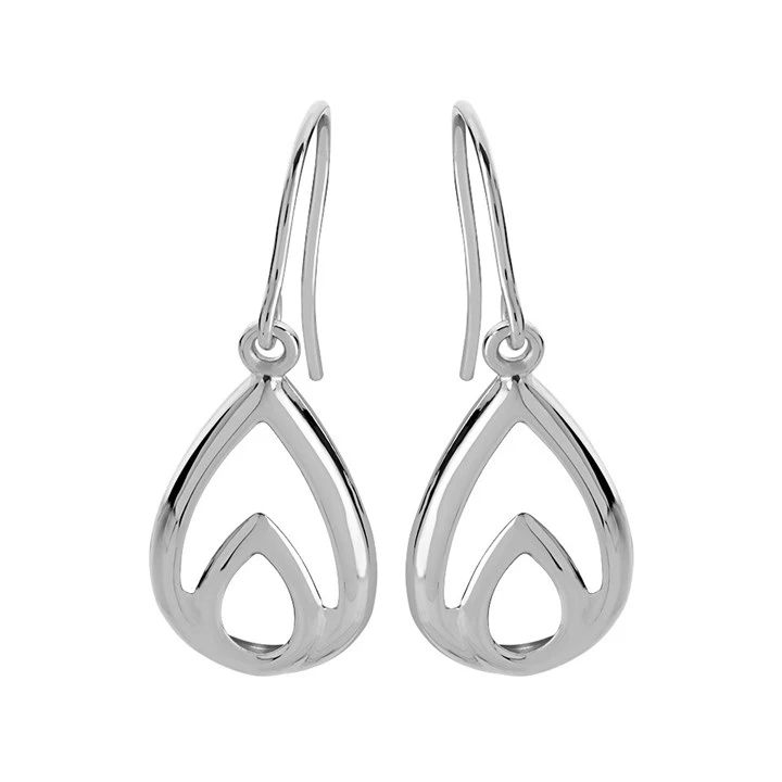 9ct White Gold Double Teardrop Hook Wire Earrings - 31mm drop - G1496