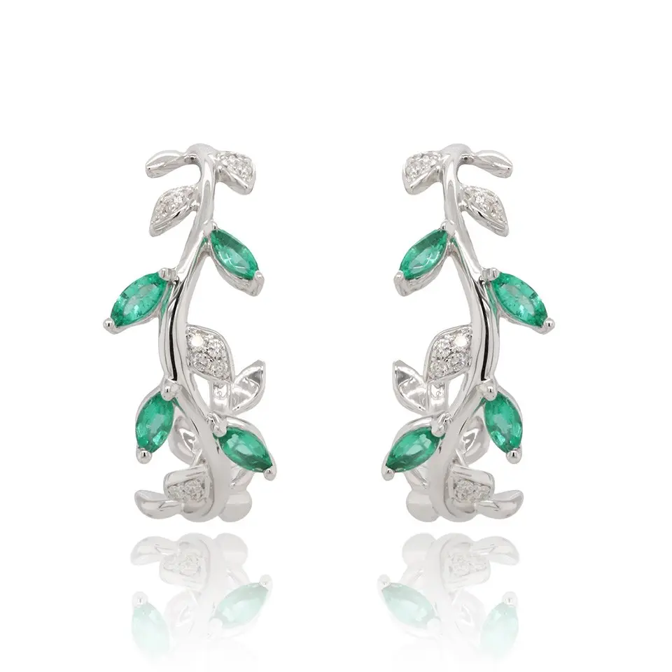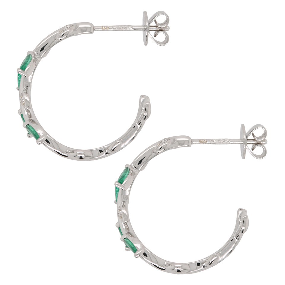 9ct White Gold Emerald And Diamond Hoop Earrings - 12pts per pair - D94119