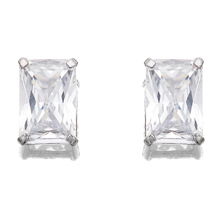 9ct White Gold Emerald Cut Cubic Zirconia Stud Earrings - G2779
