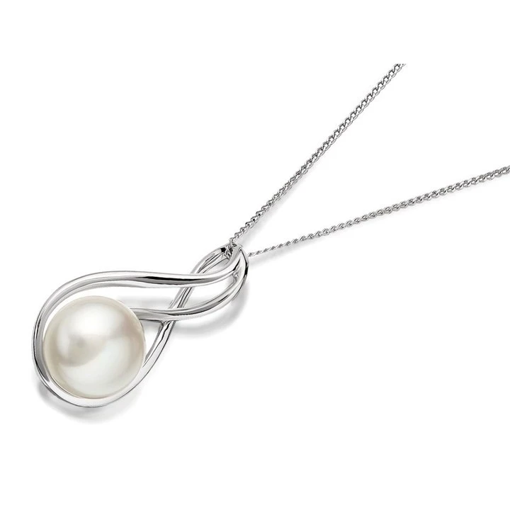 9ct White Gold Enfolded Freshwater Cultured Pearl Pendant And Chain - R7738