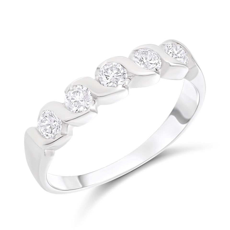 9ct White Gold Five Cubic Zirconias Wave Ring - R6546