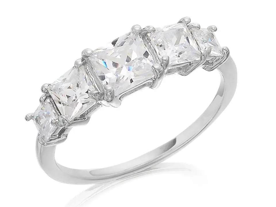 9ct White Gold Five Stone Cubic Zirconia Ring - R6107