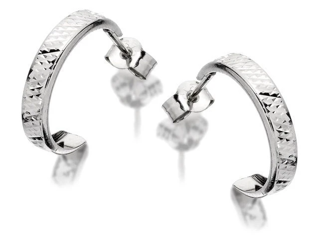 9ct White Gold Half Hoop Earrings - 14mm - G2546