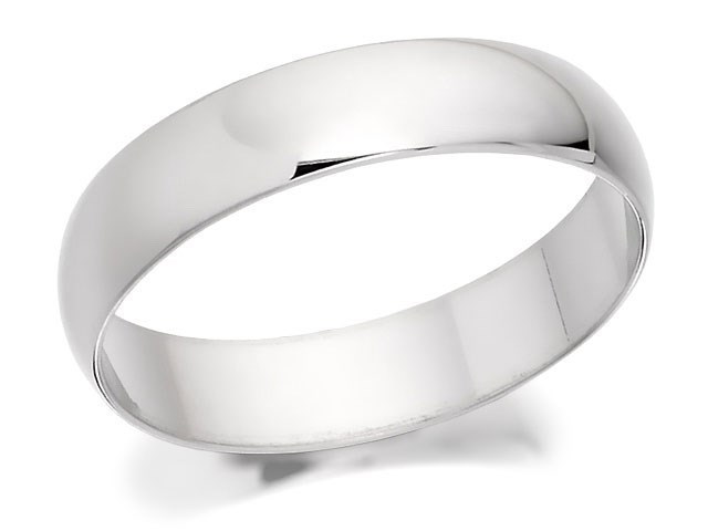 9ct White Gold Heavyweight D Shaped Wedding Ring - 4mm - R5524