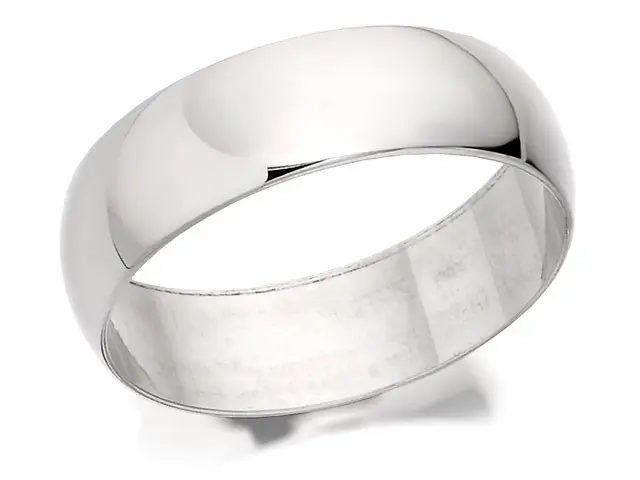 9ct White Gold Heavyweight D Shaped Wedding Ring - 6mm - R5526