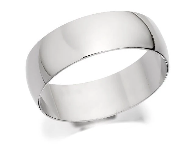 9ct White Gold Heavyweight D Shaped Wedding Ring - 7mm - R5527