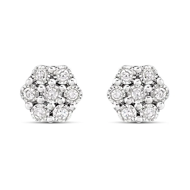 9ct White Gold Illusion-Set Diamond Cluster Stud Earrings - D96112